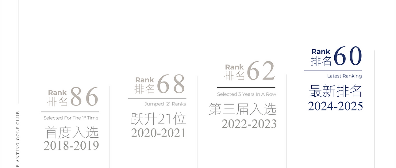 自2017年起,颖奕安亭高尔夫俱乐部连续四届上榜,已成为世界认可的最佳私人俱乐部之一。